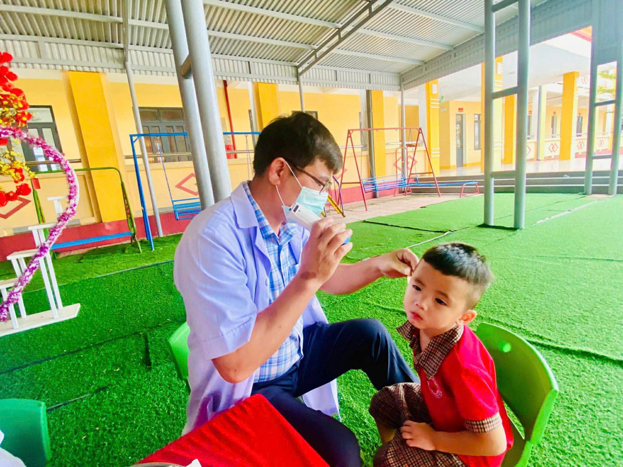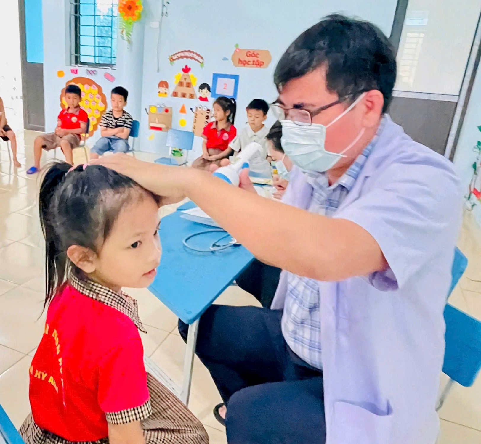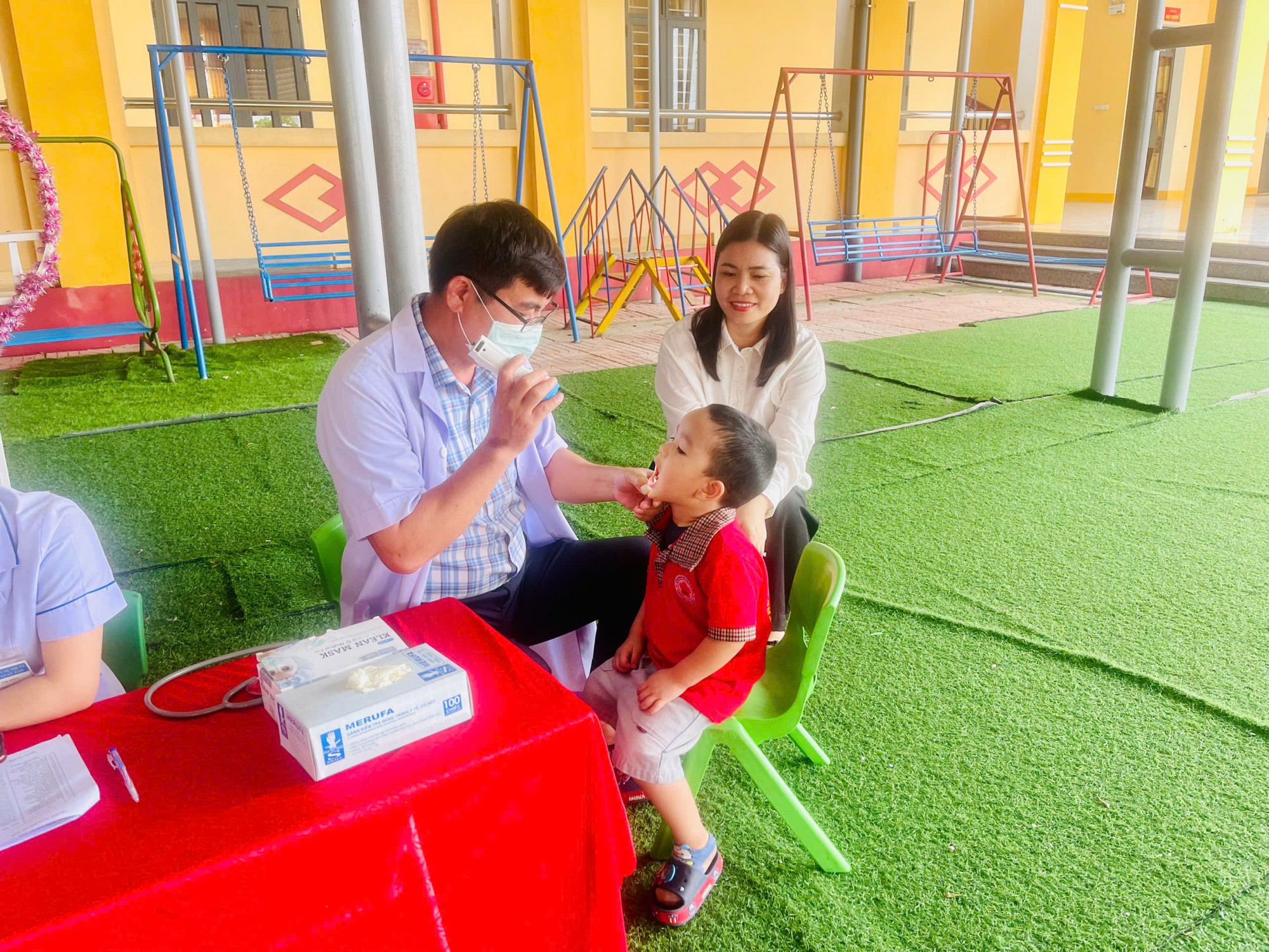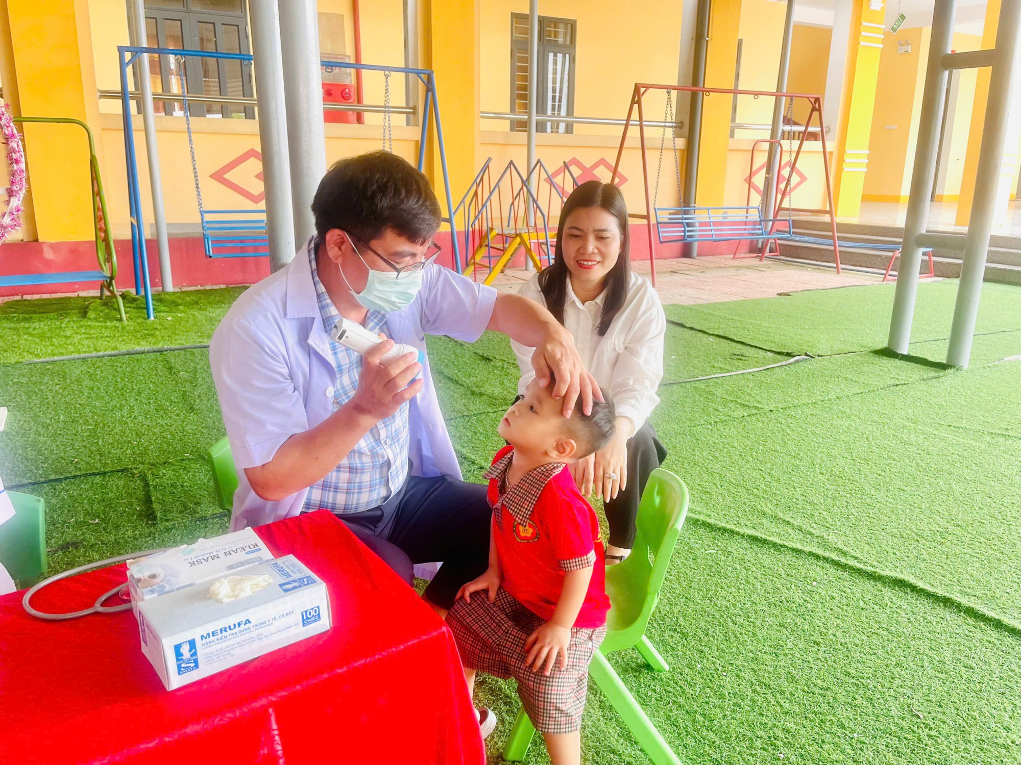 Trong buổi khám, các con đã được kiểm tra chiều cao – cân nặng, khám mắt, tai – mũi – họng, răng miệng và các chỉ số phát triển quan trọng. Đội ngũ y tế làm việc tận tâm, nhẹ nhàng giúp các bé cảm thấy thoải mái và hợp tác tốt. Kết quả khám được giáo viên và nhà trường tổng hợp để theo dõi thể trạng từng trẻ, đồng thời trao đổi với phụ huynh những nội dung cần quan tâm.